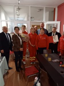 Der Vorsitzende der DLRG-Ortsgruppe Lars-Eike Brandes hat zusammen mit dem 1. Vorsitzenden des Jugendvorstandes Ole Kirchmair stellvertretend für alle Mitglieder und Verantwortlichen den mit 1.000 Euro dotierten Ehrenpreis von der Sprecherin des Stiftungsrates Ute Schwiegershausen in Anwesenheit von Christian Krause (Manager des A2-Centers) entgegengenommen. Besondere Dank gilt dem A2-Center für dessen großzügige Spende.